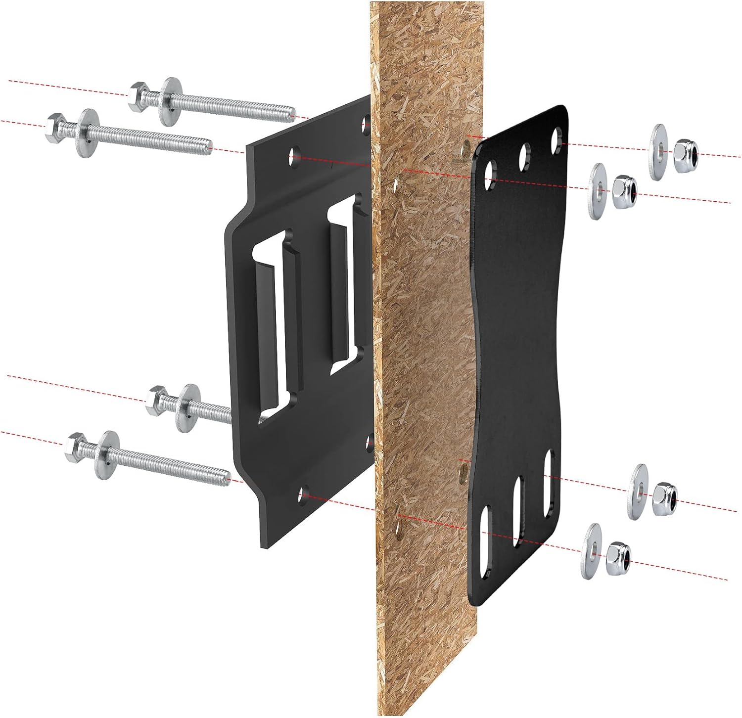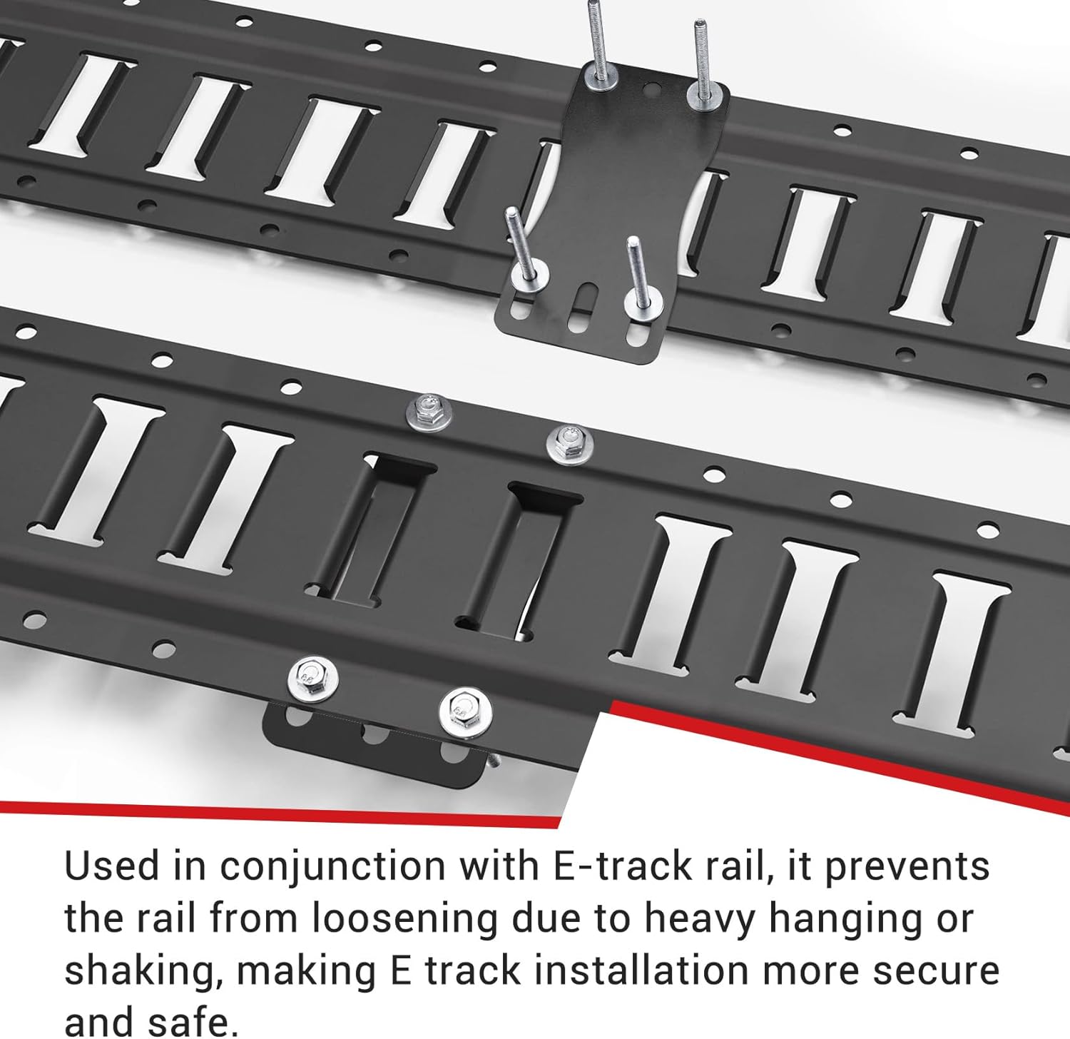 Compatible with all standard universal E-rails and X-rails, these backplates are suitable for single or multiple E-rail/X-rail holders and enhance the stability of the e-rail in use, helping to hold cargo in place. SIZE: 3"L * 6"W Bolting holes on both sides size: 1.95" apart on-centers; 1.8mm thickness. Value Pack:16 Back Plates,64 M6*65mm bolts,64 locknuts,128 Flat Washers.