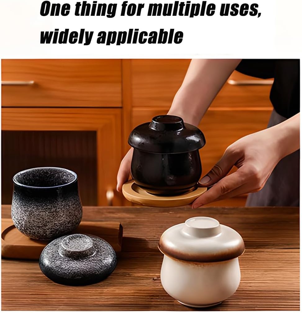 Coddled Egg Cups,Coddled Egg Cups withLids,Vintage Ceramic Soft Boiled Egg Cooker,Single or Double Soft Boiled EggMaker Sets for Steaming Eggs, Making Soup, Pudding, Etc. Suitable fordisinfection cabinets, dishwashers, microwaves, and ovens. Do not expose to openflamesFeatures: 1. Made of high-quality ceramic material,heat-insulating and safe2. Suitable for one or two people, reducingfood waste3. Versatile, not just for steaming eggs4. Easy to use: just add ingredients andwater and bring to a boil5. Retro design adds a touch of funSpecifications:Name: Coddle Egg Coddler CupsMaterial: CeramicSize: 9*9*9.5cm/3.54*3.54*3.74inWeight: 275g/0.61lbColor:As shown inthe figurePackaging:1 PC * Egg Coddler Cup1 PC * Ceramic Spoon1 PC * trayNotes:1. All products are measured manually, soslight variations may occur.2. Slight color differences may occur dueto different lighting and monitors.