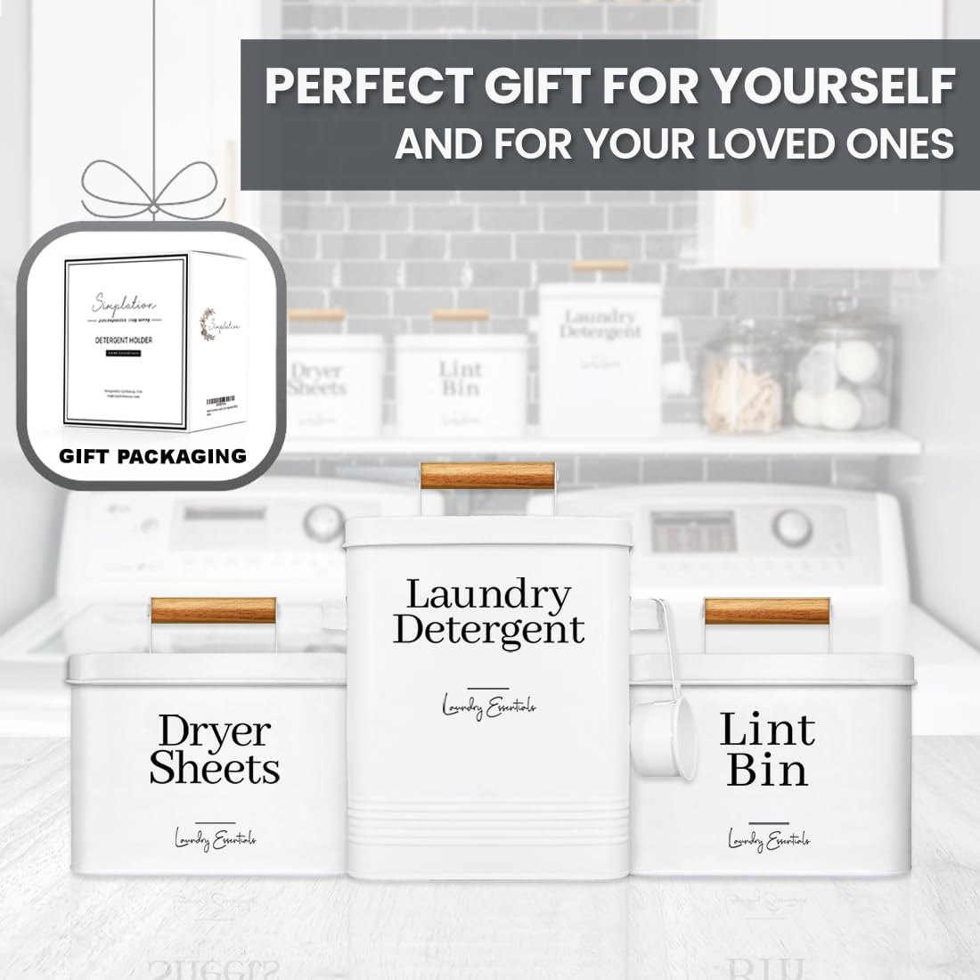 1 Laundry Detergent Container, 1 Lint Bin, 1 Dryer Sheet Holder