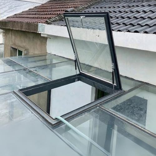 Upgrade your living space with our premium Attic Hatch Cover, designed for both functionality and style. This innovative product features a pneumatic hydraulic rod system, ensuring smooth and silent operation. With two support rods, the hatch closes gently, minimizing noise and preventing accidental pinching of fingers, making it a safe choice for families. The Attic Hatch Cover opens to a maximum angle of 80°, providing easy access to your attic, roof, porch, basement, or sunroom. Its customizable width and length allow you to tailor it to your specific needs, ensuring a perfect fit for your home. Crafted from durable aluminum alloy and tempered glass, this skylight is built to withstand the elements while enhancing your interior aesthetics with its sleek design. This versatile hatch is ideal for homeowners looking to optimize their space, whether you're accessing storage, enjoying natural light, or improving ventilation. Please note that the skylight is designed to be opened and closed solely from the inside for safety. Please refer to the actual dimensions provided in the specifications, as they represent the inner diameters of the holes. Each skylight is handmade, and a slight variation of 1 to 2 cm may occur. Transform your home today with a stylish and functional Attic Hatch Cover that seamlessly blends safety, convenience, and elegance.
