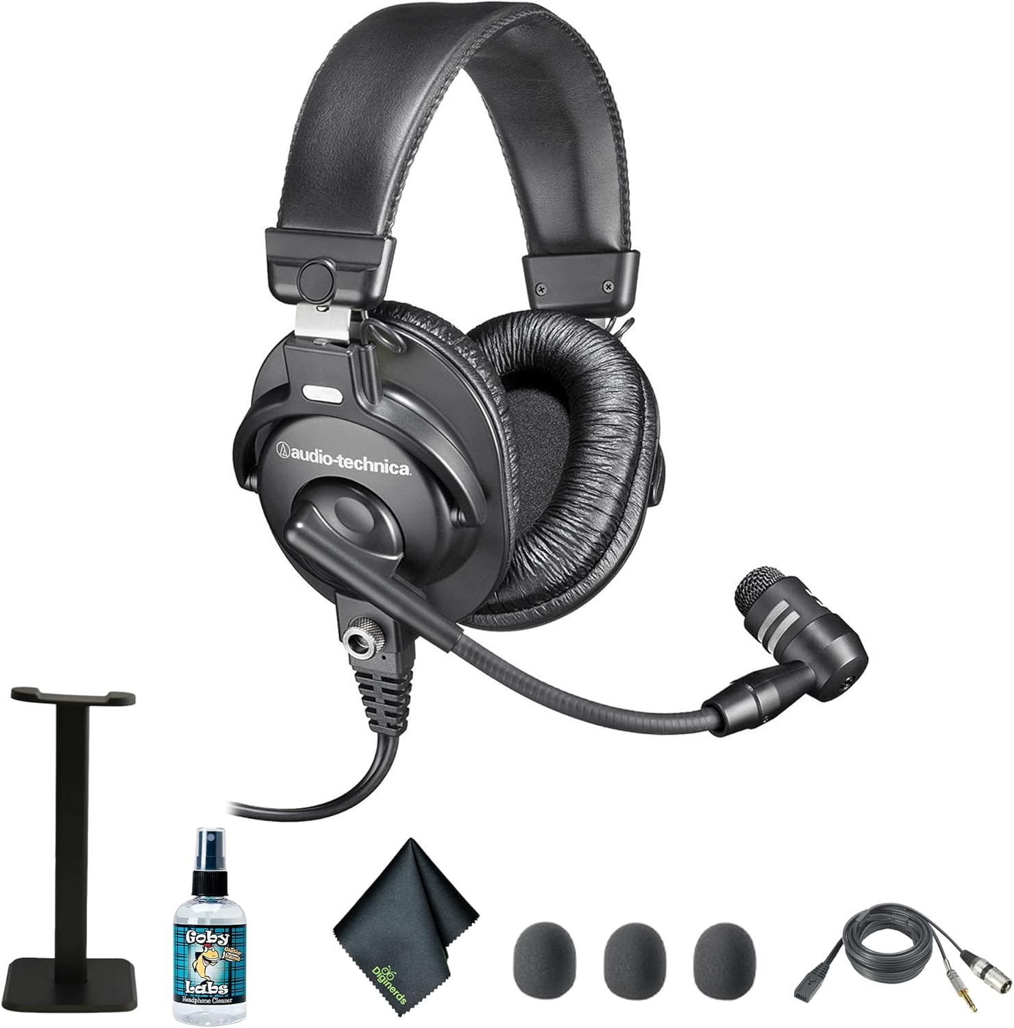 The Audio-Technica BPHS1 Broadcast Stereo Headset is engineered for professionals who require accurate monitoring and clear vocal capture in demanding environments such as live sports commentary, news broadcasting, and production direction. The dynamic boom microphone delivers focused, natural vocal reproduction with a tailored frequency response and cardioid pickup pattern to reject ambient noise and minimize feedback. Closed-back circumaural ear cups provide isolation from surrounding distractions, ensuring precise monitoring. Neodymium magnets in both the microphone and headphone drivers deliver high-output performance with detailed sound clarity. A rugged, durable construction supports daily professional use, featuring user-replaceable ear pads and cable for long-term value. Adjustable headband and lightweight design enhance comfort during extended sessions. Connectivity is reliable and broadcast-standard, with a 3-pin XLRM-type connector for the microphone and a 1/4" headphone plug for monitoring.Bundle Items Include:Audio-Technica BPHS1 Broadcast Stereo HeadsetDiginerds Microfiber Cleaning ClothHeadphone standGoby Labs Headphone Cleaner 4 fl oz