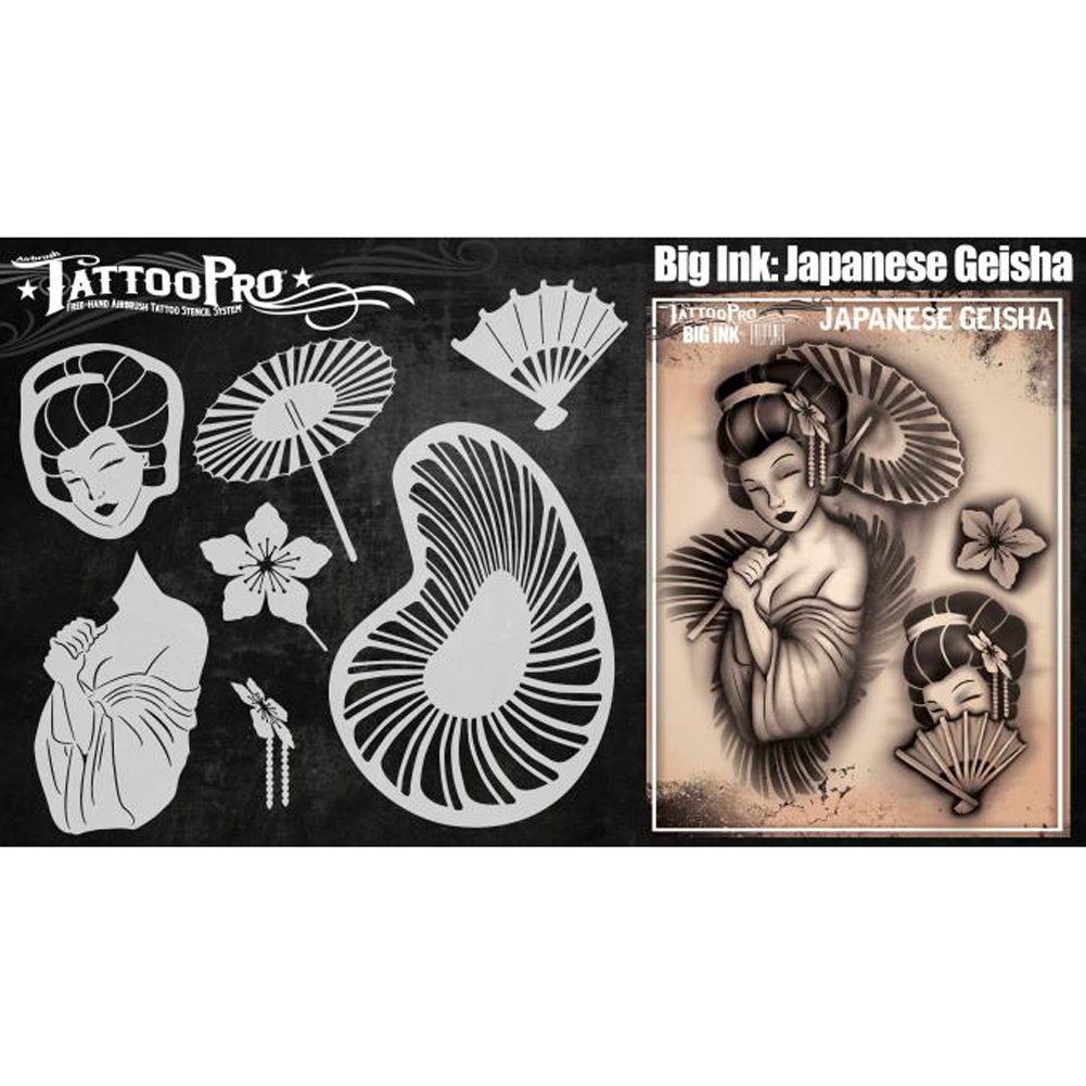 Tattoo Pro Big Ink stencils features big or oversized designs for creating full or half sleeve big tattoo designs on adults. Big Ink Stencils are easy to use, high quality free hand airbrush tattoo stencils, about 11.5" x 11.5" in size that are perfect for creating realistic tattoos within minutes. Mix and match different patterns from a wide array of Tattoo Pro Stencil sheets to create amazing designs anywhere on the body. Tattoo Pro Stencils, made of 7.5 mil mylar are durable and reusable.