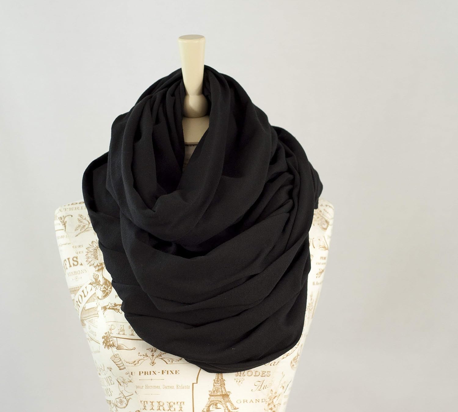 If you are looking for an oversized scarf to drape yourself in- this is the perfect scarf for you. Made from soft jersey cotton, this scarf will wrap you in lots of comfortable fabric you can get lost in. In a beautiful solid black this oversized scarf will be the perfect neutral color for any outfit. This is a fabulous scarf to give you the trendy oversized look you have been searching for. Also perfect to be worn as a shawl or as a hooded scarf. Measurements: Length: 33-34" Circumference: 66-68" Width: 27-28" Wide (54-56" circumference)
