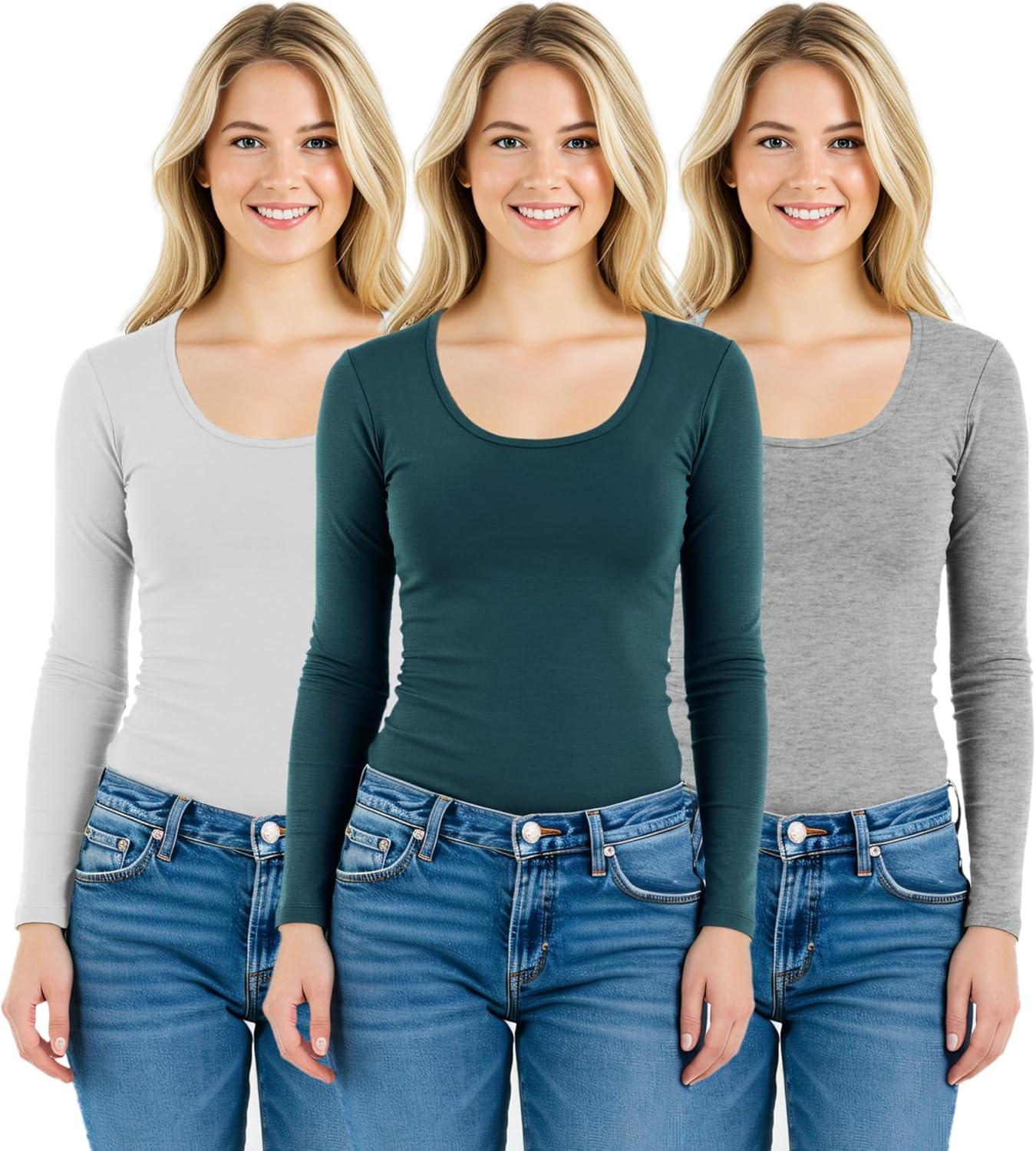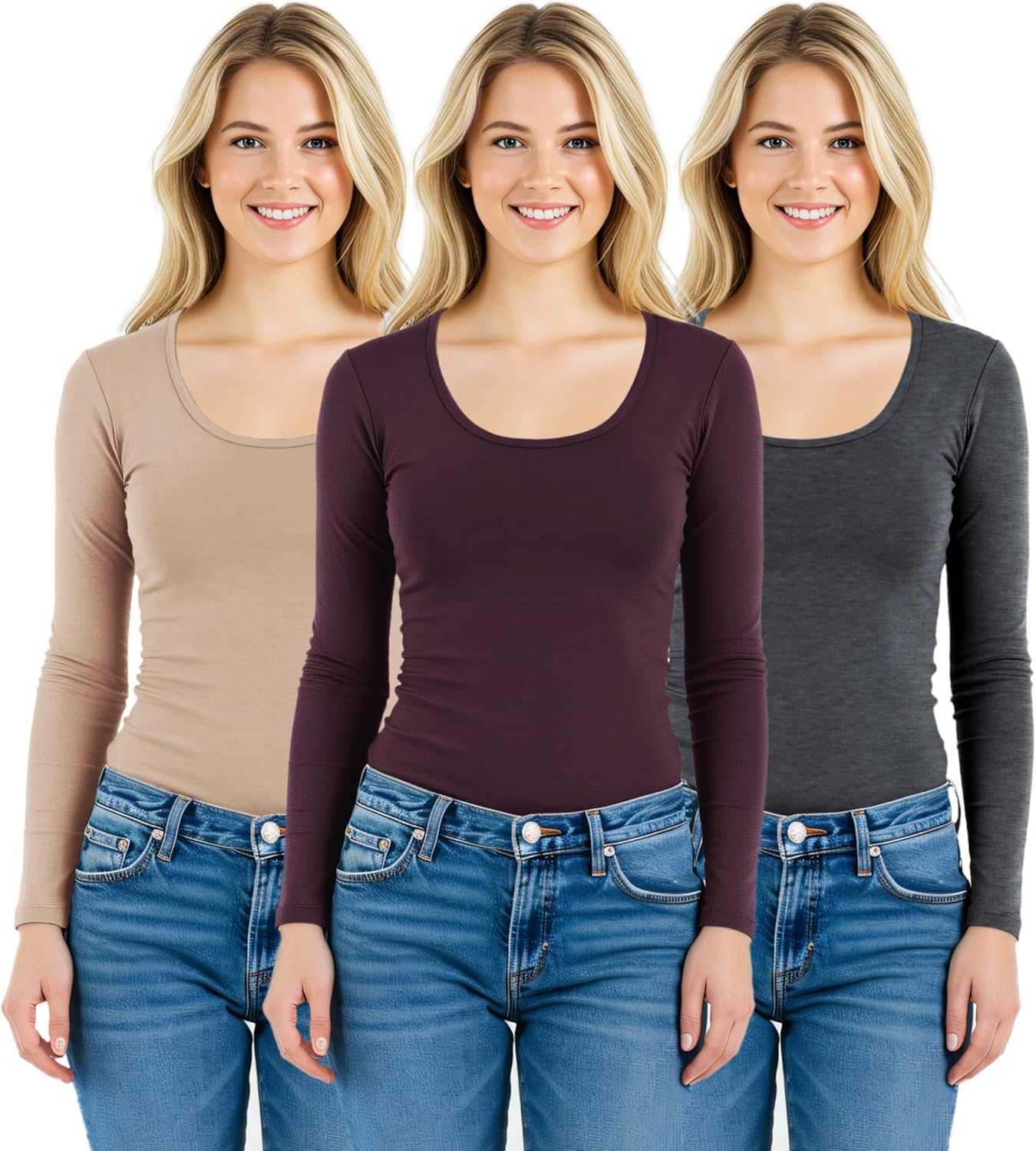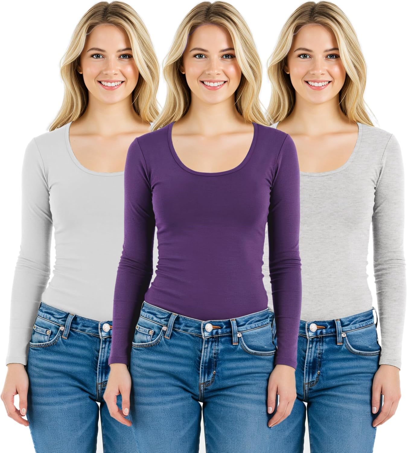 Emmalise women's round neck long sleeve shirts will give you extra comfort with soft, stretchy and lightweight fabric. Wear them alone, wear under your jacket, sweater or match with other shirts for layering. These t shirts can be used for workout, yoga or jogging too. Perfect for any occasion! Find your favorite 3 color combination pack and save money!