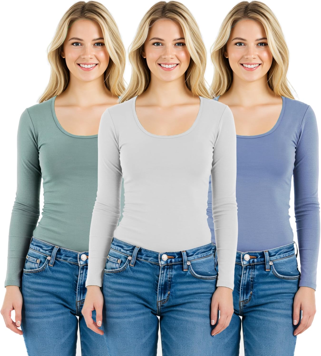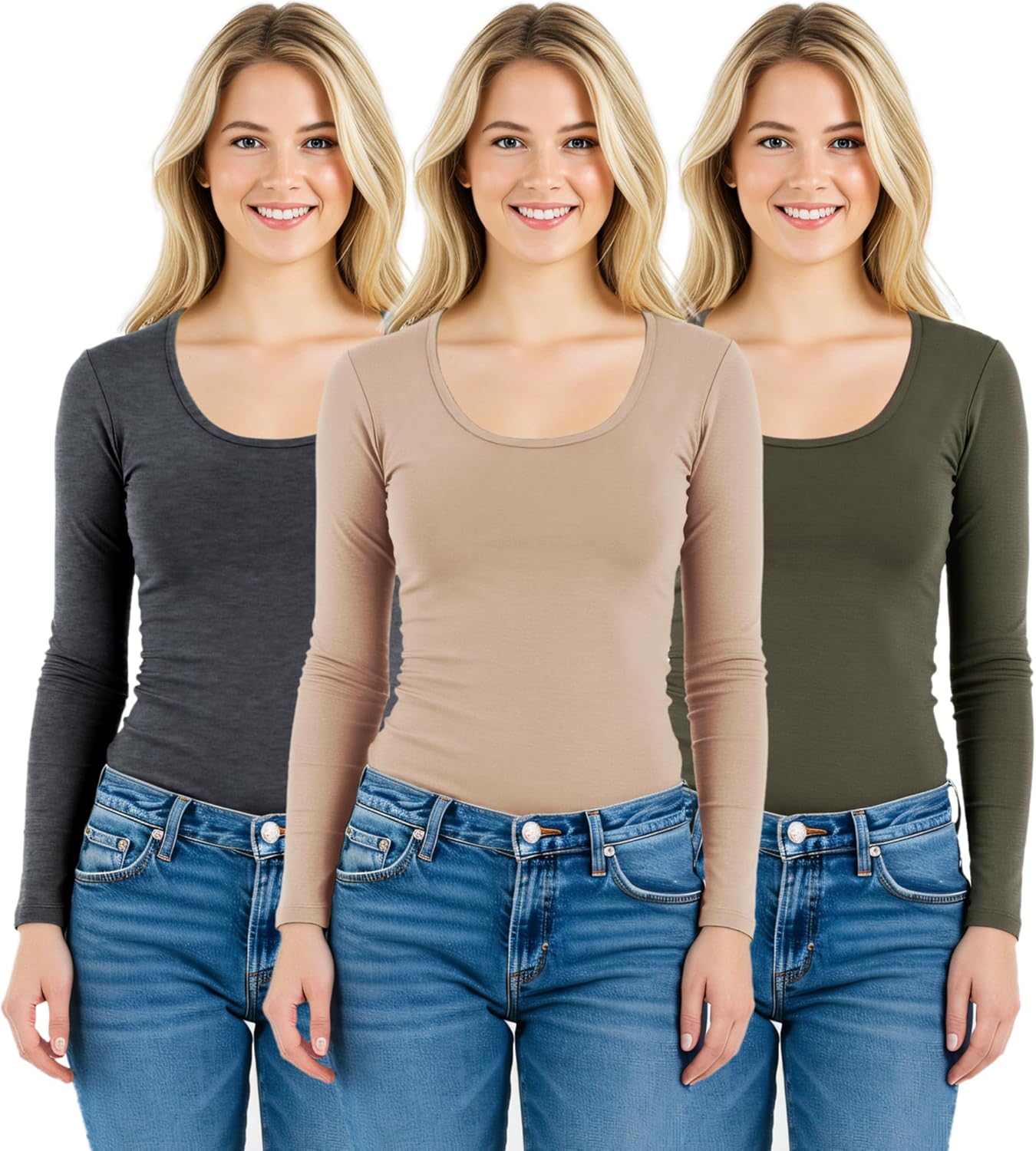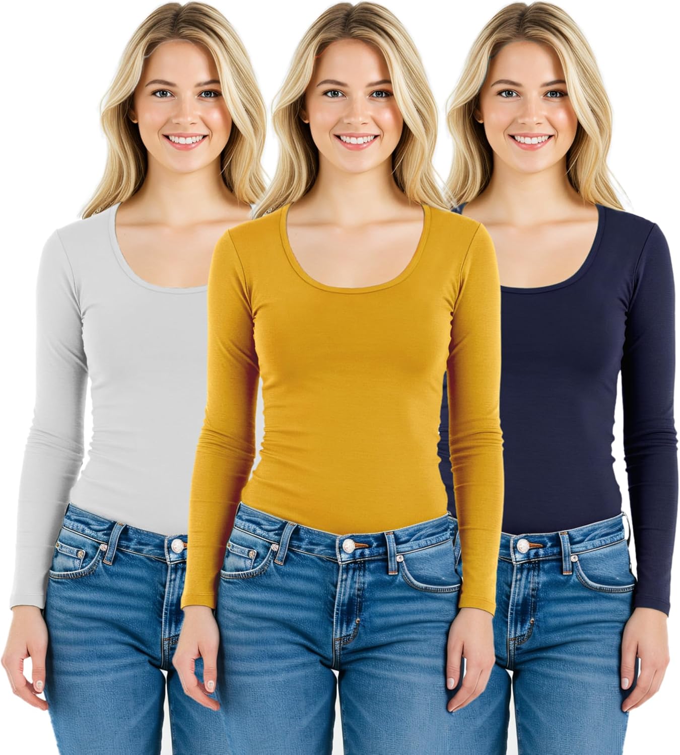 Emmalise women's round neck long sleeve shirts will give you extra comfort with soft, stretchy and lightweight fabric. Wear them alone, wear under your jacket, sweater or match with other shirts for layering. These t shirts can be used for workout, yoga or jogging too. Perfect for any occasion! Find your favorite 3 color combination pack and save money!
