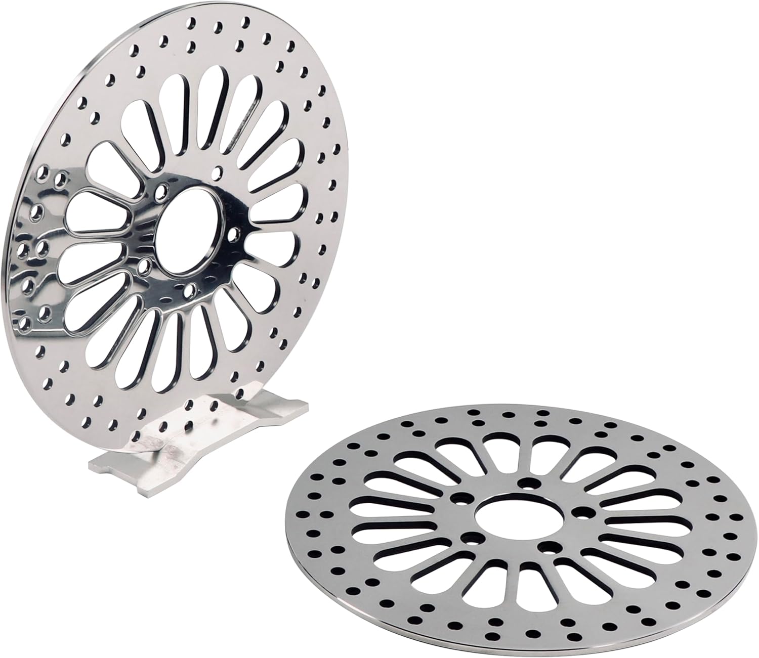 WHY FATFLEX 11.8'' FRONT BRAKE ROTORS FOR HARLEY DAVIDSON 2008-UP FRONT BRAKE ROTORS UPGRADING? 1. 420 STAINLESS STEEL = NO RUSTING ISSUE. 2. NEARLY MIRROR POLISHING = NICE FINISH. 3. TORX BOLTS FOR PERFECT FIT = COST-EFFECTIVE. FEATURES: Only for spoke wheels with 5-screw mounting hub. A drilled pattern for optimal heat dissipation. Precision ground for maximum flatness. Tight one-by-one inspection for excellent quality. Polished front disc: 11.8" O.D. (SOLD IN PAIR) FITMENT: ONLY FOR SPOKE WHEELS WITH 5-SCREW MOUNTING HUB. SOLD IN PAIR FOR A DUAL DISC WHEEL. Electra Glide Police FLHTP: 2017–2022 Electra Glide Revival FLH: 2021 Electra Glide Highway King: 2023 Electra Glide Classic FLHTC/I 2008-2013 Electra Glide Standard FLHT 2019-2022 Electra Glide Standard FLHT/I 2008-2009 Electra Glide Ultra Classic FLHTCU/I 2008-2019 Electra Glide Ultra Classic Low FLHTCUL 2015-2016 Electra Glide Ultra Limited FLHTK 2010-2024 Electra Glide Ultra Limited Low FLHTKL 2015-2019 Ultra Limited Anniversary FLHTK: 2018 Ultra Limited CVO Anniversary FLHTKSE: 2018 Ultra Limited CVO FLHTKSE: 2017–2021 Road Glide Custom FLTRX 2010-2013 Road Glide CVO/SE FLTRSE3 2009 Road Glide CVO/SE FLTRXSE 2012-2023 Road Glide FLTR/I 2008-2009 Road Glide FLTRX 2015-2023 Road Glide Ultra CVO/SE FLTRUSE 2011 Road Glide Ultra FLTRU 2011-2019 Road Glide Limited CVO FLTRKSE: 2022-2023 Road Glide Limited FLTRK: 2020–2024 Road Glide Special FLTRXS: 2015–2023 Road King Classic FLHRC/I 2008-2013 Road King FLHR/I 2008-2022 Road King Special FLHRXS 2017-2024 Road King Police FLHP: 2017–2024 Street Glide FLHX/I 2008-2023 Street Glide Special FLHXS 2014-2023 Street Glide ST FLHXST 2022-2023 Street Glide Anniversary FLHX: 2018 Street Glide CVO/SE FLHXSE: 2017–2023 Street Glide Special Anniversary FLHXS: 2018 Street Glide Trike FLHXXX 2010-2011 Tri Glide CVO/SE FLHTCUTGSE 2020-2022 Tri Glide Ultra Classic FLHTCUTG 2009-2024 Freewheeler FLRT 2015-2024 Road Glide 3 FLTRT 2023-2024