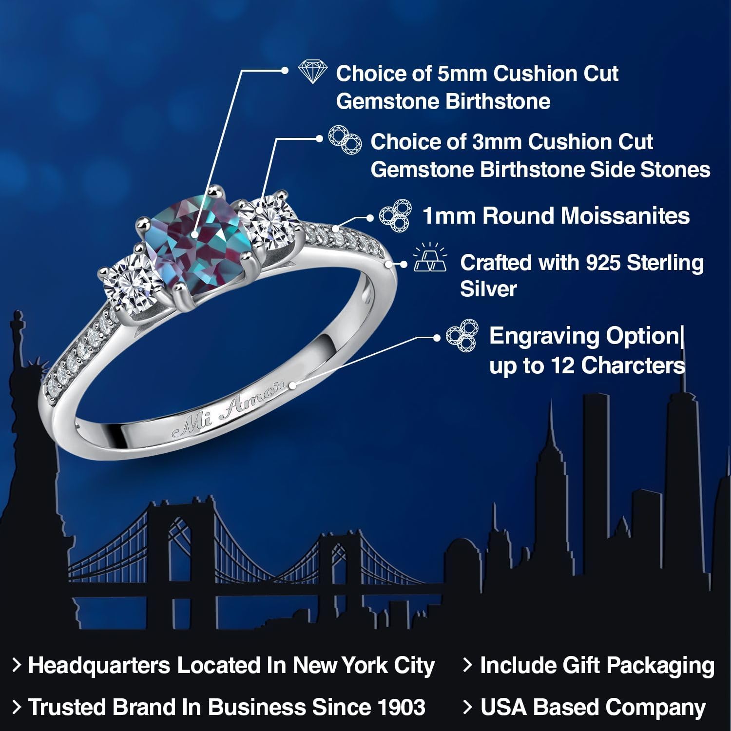 | Gem Type | Amethyst (February), Garnet (January), Moissanite GH (April), Mystic Topaz (June ... and more |
