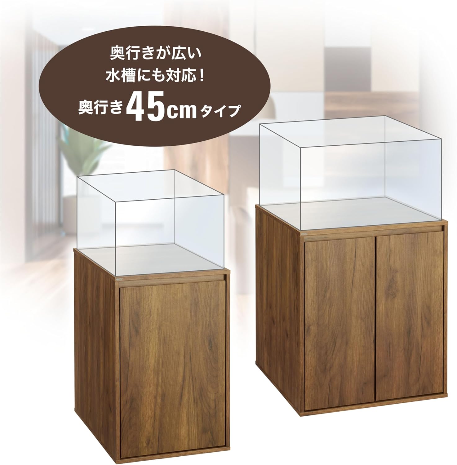 [Product Specifications] Assembled Size: Approx. Width 23.8 x Depth 17.9 x Height 27.6 inches (60.5 x 45.5 x 70 cm); Load Capacity: 58.6 lbs (230 kg); Material: Wood board; Compatible Aquarium: Width 23.6 x Depth 17.7 inches (60 x 45 cm); Assembly required.