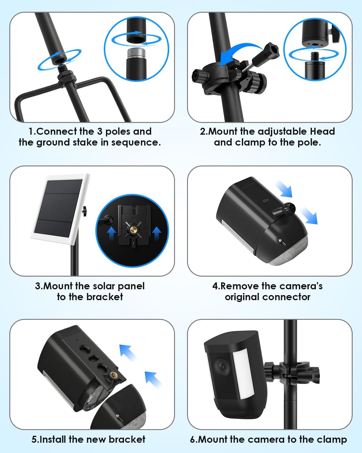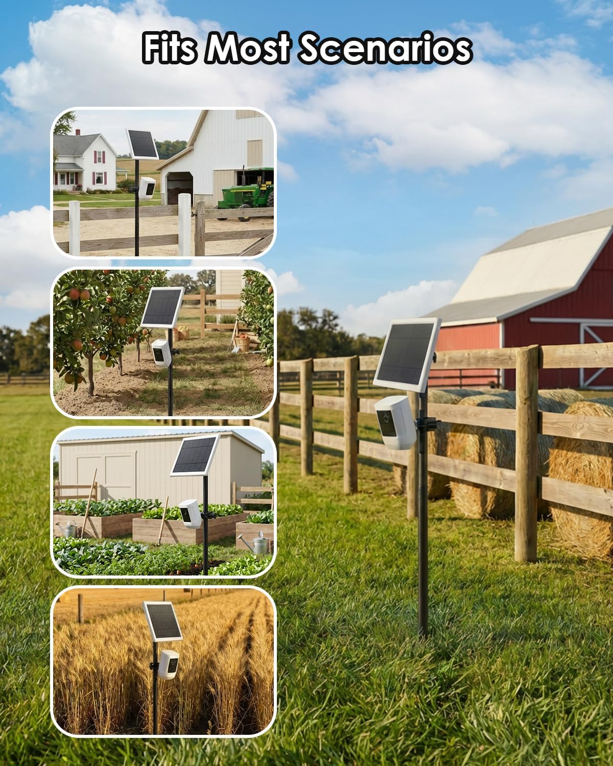 • 2-in-1 Dual Support System: Dual-head integrated mount fits camera and solar panel on a single pole, cutting messy stands for a tidy setup and continuous eco-friendly solar power.
