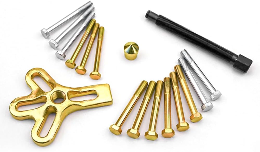 Specifications: Material: Steel Color: Grey Package Weight: 1390g / 3.06lb Package Size: 22.3 * 17 * 4.7cm / 8.78 * 6.69 * 1.85in Package List: 17 * Steering Wheel Pullers 1 * Storage Case