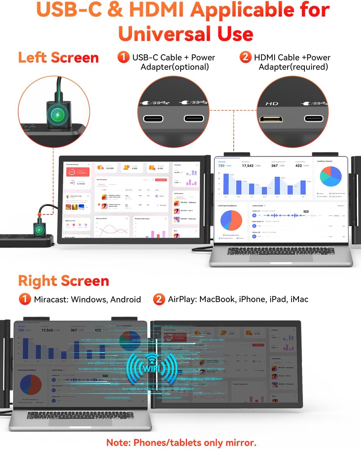 | BuiltIn Media | 1x Dual Portable Monitor, 1x Mini-HDMI to HDMI Cable, 1x Power Adapter, 1x User Manual, 2x USB-C to USB-C Cable |