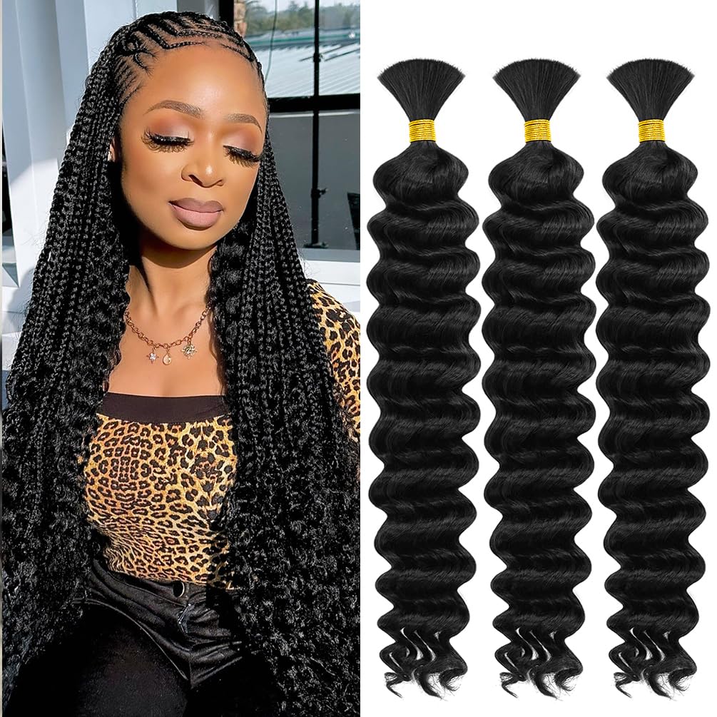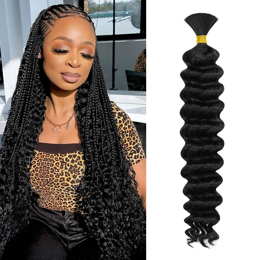 | Material Features | Deep wave human hair for boho braids are made of 100% unprocessed 10A Brazilian virgin wet and wavy braiding hair. full and thick deep wave bundles for boho braids, perfectly blended with your hair. The texture of human hair bulk for braiding is very soft, comfortable and smooth, beautiful boho bundles human hair from beginning to end, no shedding, no knots. Boho braids human hair for braiding will not hurt the scalp, easy to maintain. |
