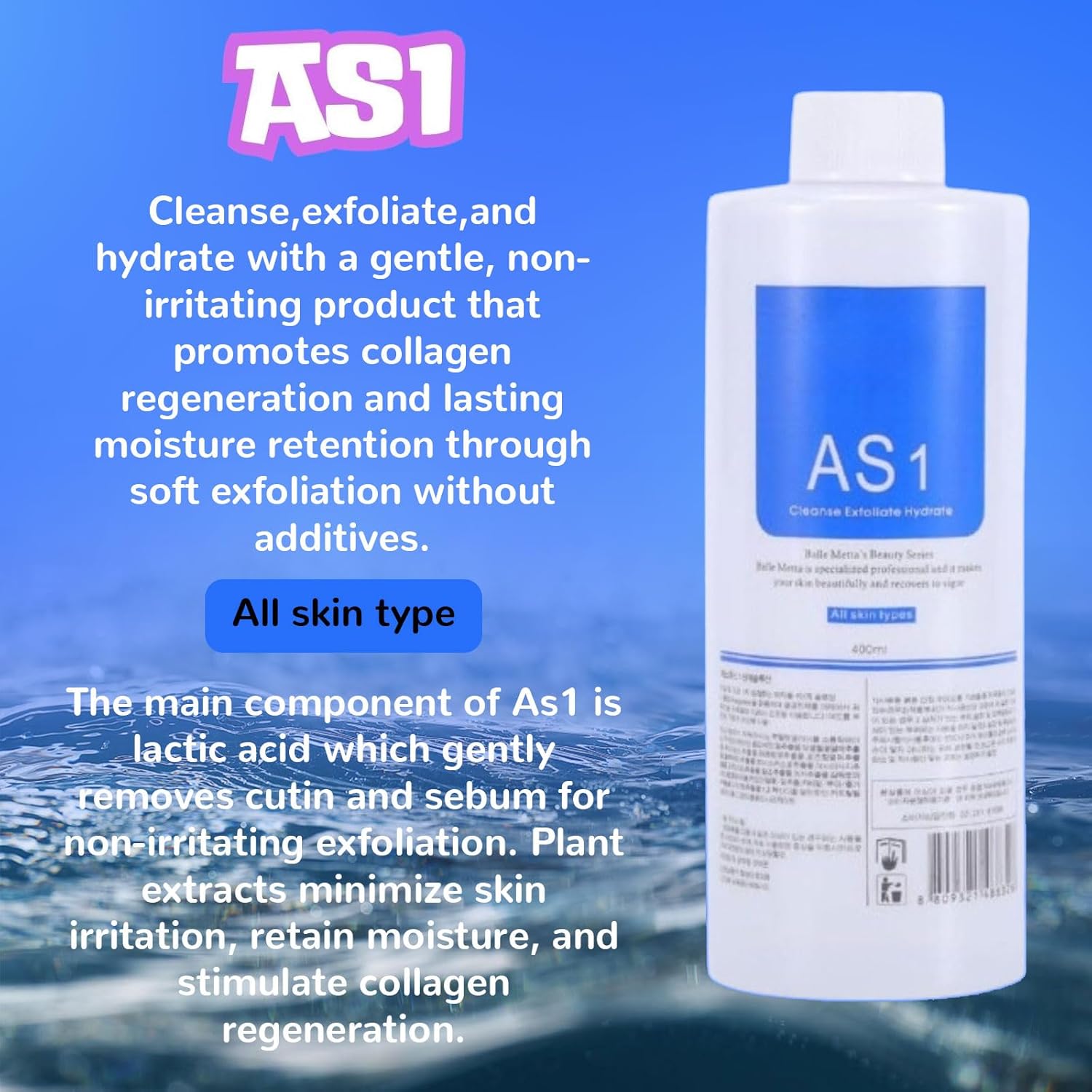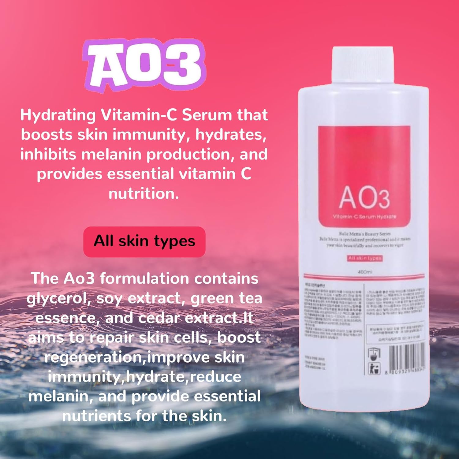 Elvenstars Hydrate Solution for Facial Machine Hydrogen Oxygen Professional, AS1 SA2 AO3 Solution Serums for Hydration Face Cleaning, Face Skin Care, Hydrating, Exfoliate 400ml/6pcs