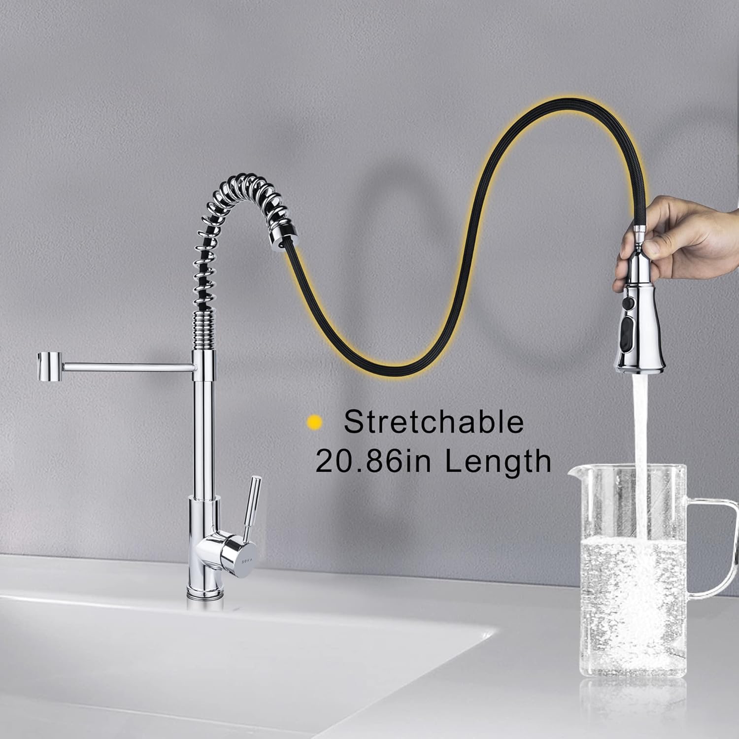 The best kitchen facuets ideas start with greatquality. This faucet fits into the modern kitchen. The designer added a button sprayer. Is to make your life more convenient, it does not need to keep pressing the sprayer nozzle. It has 2 kinds of water way. Change the traditional kitchen way. It's the perfect intersection of form and function in your kitchen with its easy to install design and water saving performance. ✿Features: 1. Can be Stretch 2. Can be Rotated 3. Brushed Finish Surface Treatment 4. Features 1 hole OR 3 hole installation 5. Dual-Function Sprayhead 6. Pull-down kitchen faucet ✿Specifications: 1. Overall height 19. 5" 2. Spout Height 6. 5" 3. Spout Reach 8. 3" 4. Zinc faucet body 5. stainless steel spring and spayer holder 6. brass cartridge base 7. ceramic disc cartridge 8. ABS sprayer, nylon braided pull-out hose and water supply lines 9. 10" stainless steel deck plate ✿Package Includes: 1 x SOKA Kitchen Faucet Set 1x User manual 1x Service Card