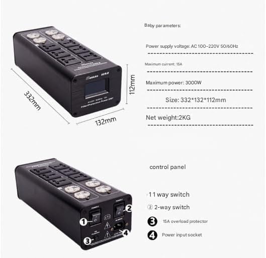 Elevate the performance of your hi-fi components and home theater systems with this Professional Power Conditioner & Purifier. Using advanced EMI/RFI noise filtering technology, it suppresses power noise and interference, ensuring clean, stable AC power for improved sound clarity and depth. Designed with a robust 3000W capacity and equipped with 10 organized outlets, including universal sockets and standard US outlets, this AC power filter can power everything from amplifiers to subwoofers and projectors. The built-in overload protection and anti-lightning circuitry ensure the safety of your valuable electronics, while the real-time voltage monitoring on a large LCD screen keeps you informed of your power health. Constructed with a durable all-metal housing and high-purity copper wiring, this power conditioner guarantees excellent shielding, heat dissipation, and performance. Trust this advanced AC power filter to enhance the soundstage, minimize interference, and optimize energy efficiency for all your electronic devices.