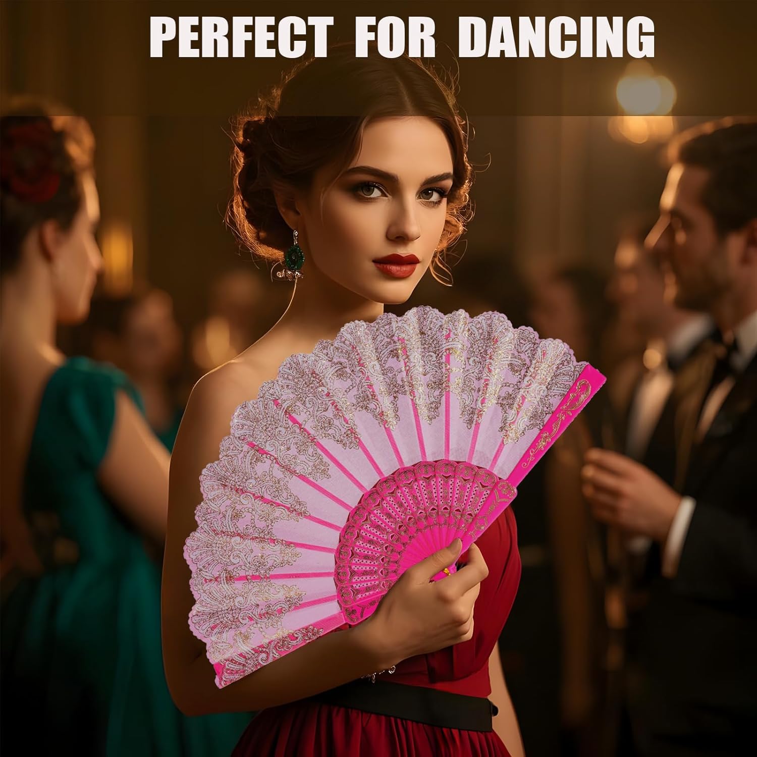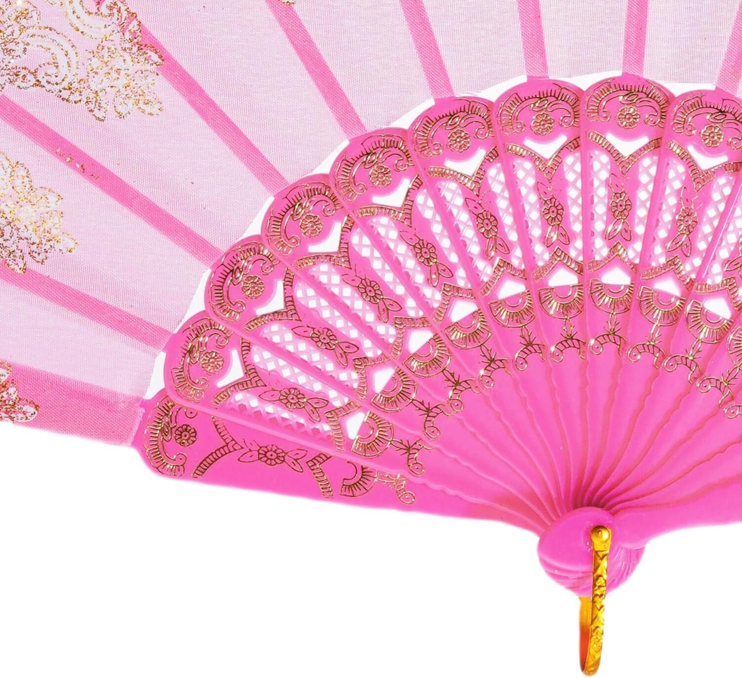 These stunning floral hand fans are the perfect accessory for adding a touch of elegance to any event. Made from high-quality fabric with peacock pattern, each fan is carefully crafted to ensure durability and beauty. The delicate lace trim and intricate hollow carved plastic staves make these fans a true work of art. With a convenient metal U ring handle, they are easy to hold and open. Whether you're attending a wedding, enjoying a night of dancing, or hosting a memorable party, these folding hand fans will keep you cool and stylish. Compact and lightweight, you can easily carry them in your bag for whenever you need a refreshing breeze. Don't miss out on the opportunity to own these fashionable accessories.