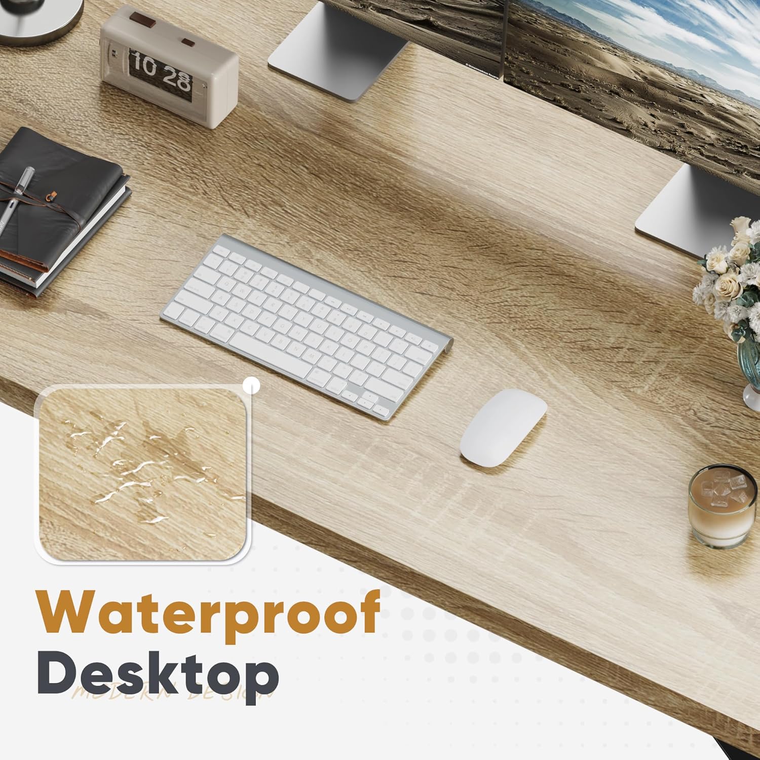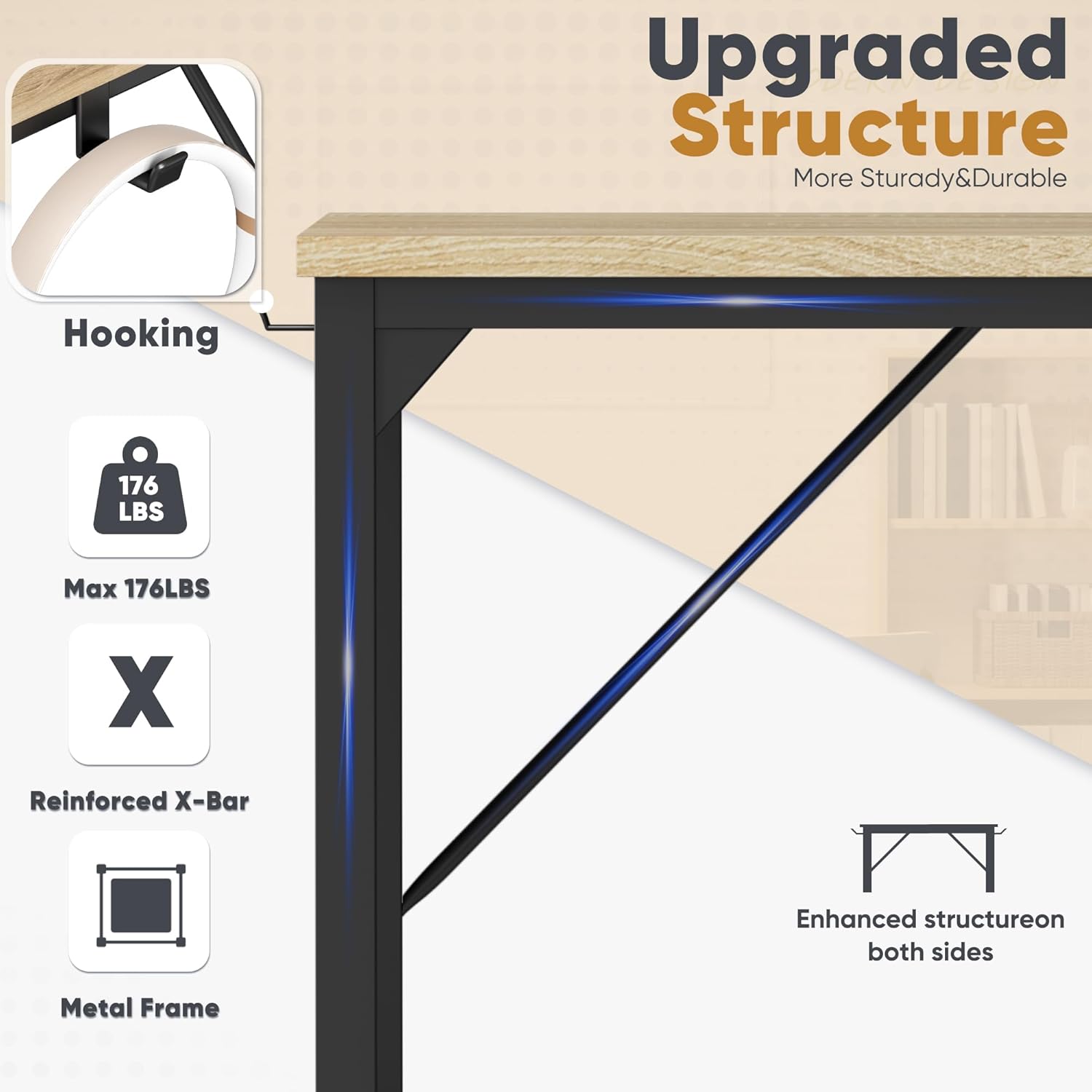 Shahoo Computer Office Desk Feature: The metal frame and corner reinforcement structure provide reliable supporting up to 188 lbs! Our desk provides ample space to keep your essentials organized and within reach. Say goodbye to messy workspaces! Specification Color: Nature Material: Metal,Woodern, etc Package Dimensions: 50"(L) x 22.24"(W) x 3.35"(H) Package Weight: 26.02lbs Package includes: An office desk A tool kit A manual of installation and usage Notice: There may be some differences between photos and items in term of color because the influence of lighting during the shooting or the settings of the computers’ display screen.