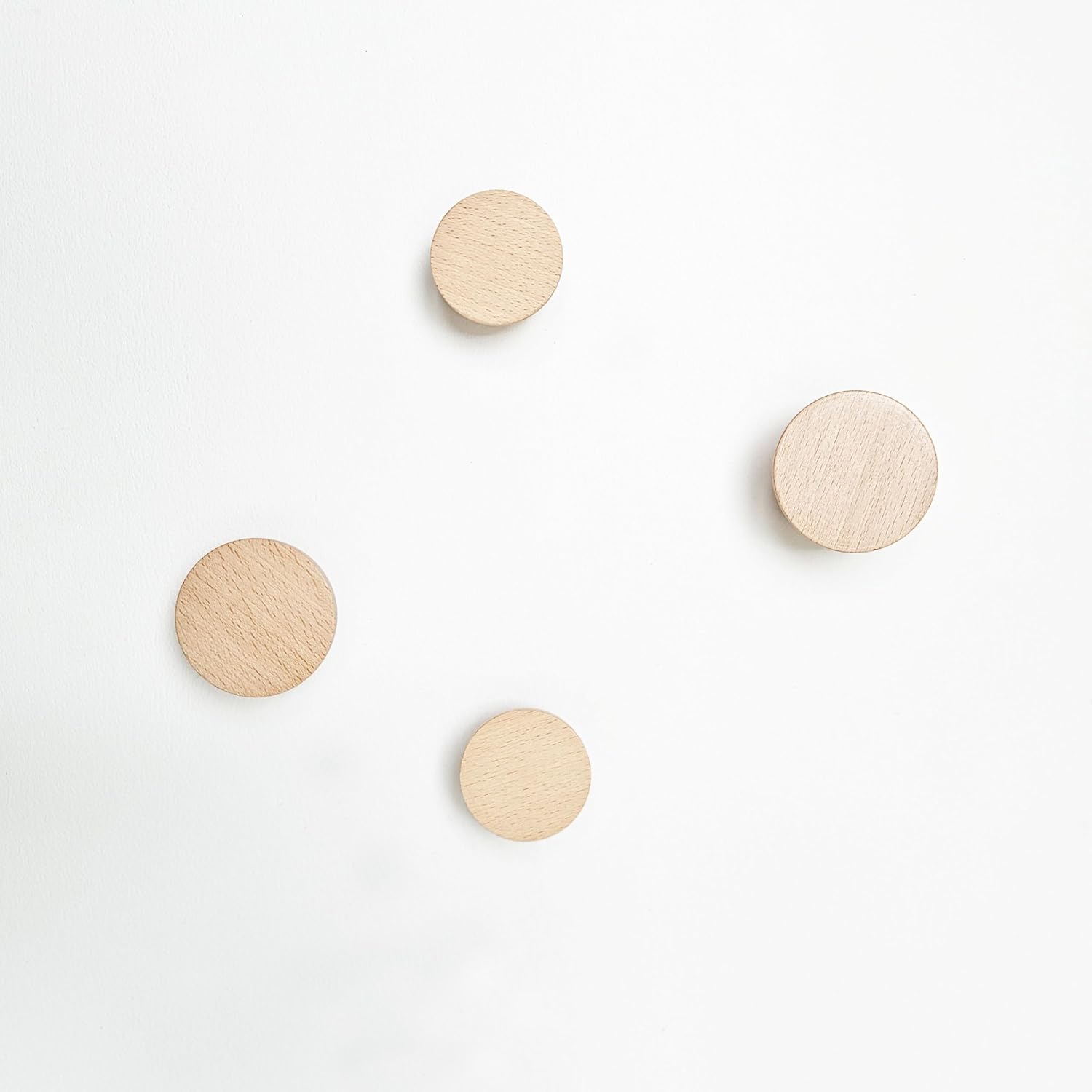 Simple and contemporary round beech wood wall mounted coat hook that can be used together with the other hooks from the collection to create your own personal style in your interior. A beautiful and eye-catching coat hook with a modern yet natural appearance. This product can serve as a wall hook or knob, as two types of screws are included to be able to fix to a wall or alternatively doors, cabinets, etc. Size options - The round beech wood coat hook / knob is available in 1.9 inch or 2.3 inch diameter. Alternate both sizes to create a playful style.
