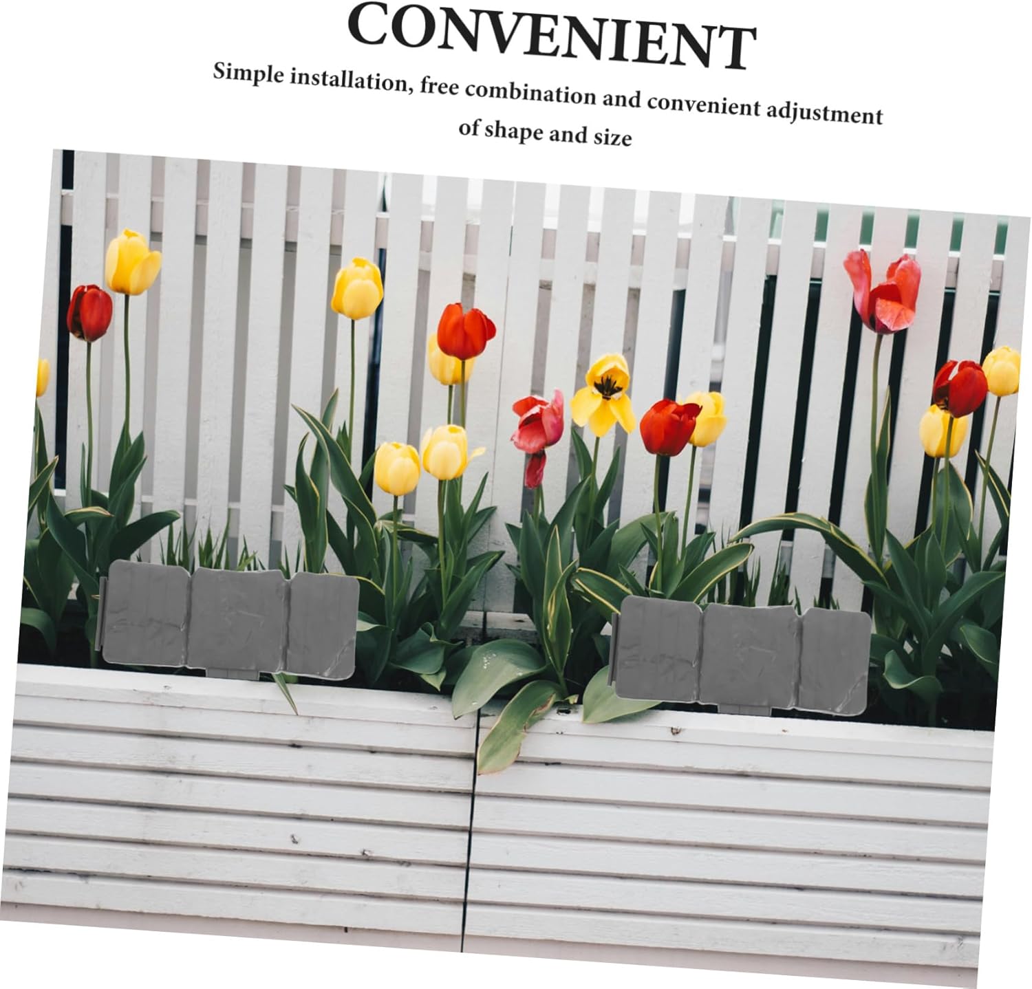 Package Include 20 fence edging Features -Durable and flexible: made from flexible plastic, this garden edging is resistant to breaking and can withstand various weather conditions landscape edging. -Color:Grey plastic lawn edging -Size:25.00X13.00X10.00cm/9.82X5.11X3.93in no dig border edging -Easy installation: the fence is easy to install and can be freely combined, allowing you to adjust the shape and size to fit your specific needs garden flower fence. -Material:PVC decorative garden fence -Versatile use: ideal for vegetable gardens, pathways, farms, and villa gardens, this product offers a of applications for your outdoor spaces decorative garden edging -Simple and elegant design: the picket fence design is both simple and elegant, making it suitable for various garden settings and enhancing the overall look landscape bricks. -Stonelike appearance: the plastic material mimics the look of stone, seamlessly blending with your lawn and aesthetic flower bed edging.Goods Descriptiondog fencing The outdoor small fence is easy to install, requiring no digging, and can be arranged in various shapes to suit your landscaping needs.garden flower fence Each set includes 20 pieces, providing ample coverage for your garden.faux stone garden edging border The faux stone plastic fence is an ideal solution for enhancing the aesthetics of your garden.garden picket fence This garden edging is great for creating a neat and tidy border around flower beds, lawns, and pathways