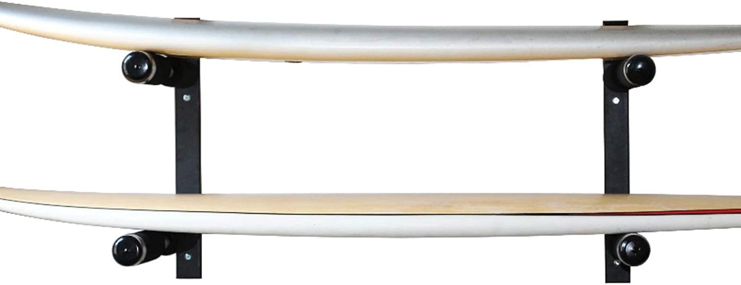 Specification:Name: Surfboard storage rackColor: blackMaterial: steel frameWeight: 5.0kgLoading capacity: 50kgFeatures:High-strength aluminum tube structure and bracket with foam paddingCan store a surfboard, including screws and hardwareMulti-layer advanced anti-rust technologyPadded bracket protects the surfboardSuitable for surfboards, longboards Packing list:2* Kayak Storage Rack