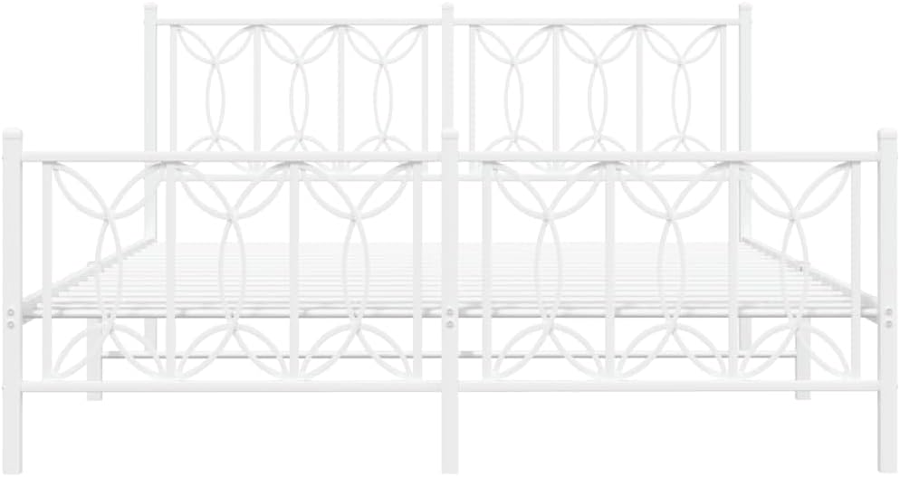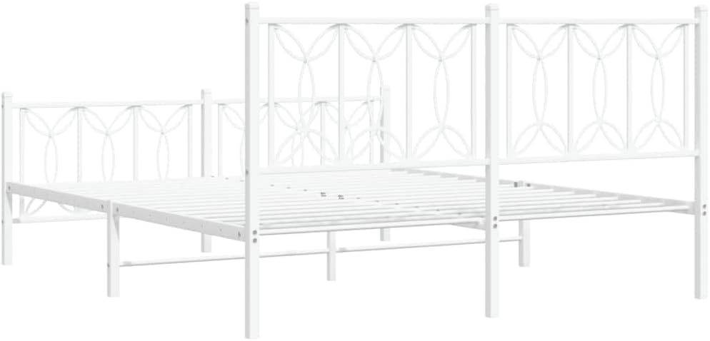 vidaXL Metal Bed Frame with Headboard/Footboard - Double Bed 59.1"x78.7" - Classic White Steel Mattress Support