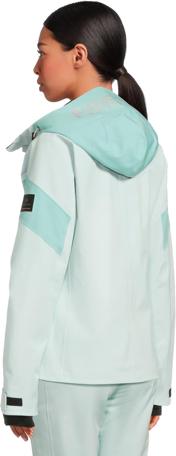 Slightly fitted at the waist;Hood with visor and large FIRE+ICE print;Fastened with a two-way zip with 'B' logo pendants;Two side zip pockets;FIRE+ICE patch and ski pass pocket on the left sleeve;Adjustable sleeve hem with touch fastening;Elasticated sleeve hem cuffs with thumbhole;Drawstring with elasticated cord in the hem;Zip pocket and mesh pocket inside;Snow skirt with snap buttons;Heat sealed seams;In waterproof,breathable four-way stretch fabric made from recycled polyester (GRS certified);