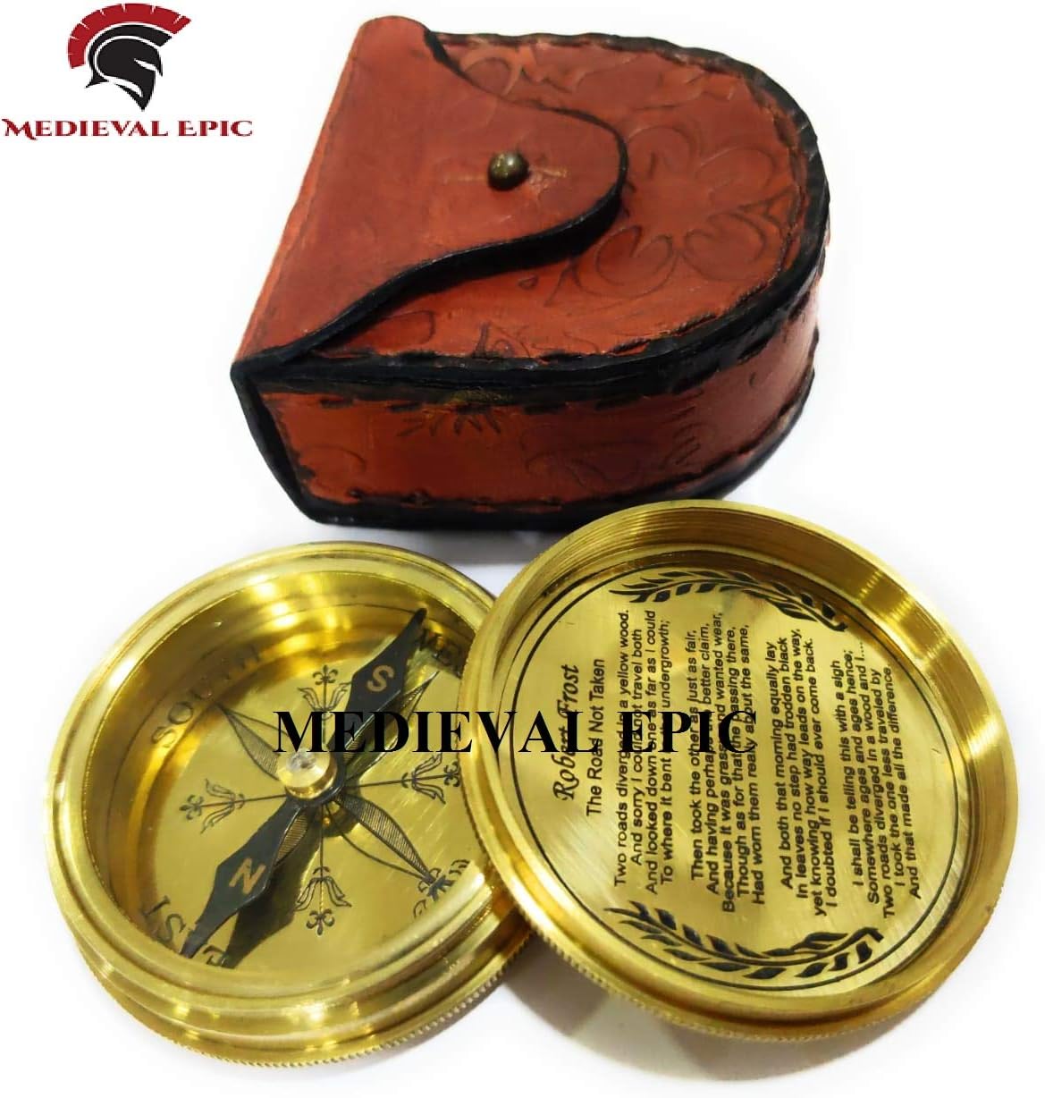 New Solid Brass Compass with Famous Quote of Andre Gide "Man Cannot Discover New Oceans Unless He Has The Courage To Lose Sight Of The Shore" .Size-Compass:50mmX18mm, Leather Case:2.5x2.5x1inches.