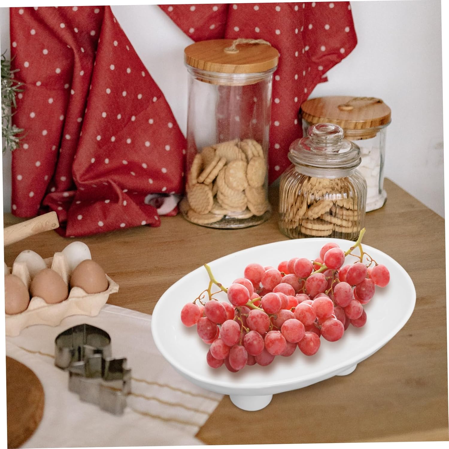 Package List 1 x Fruit Bowl Features -Size:26.00X16.50X8.50cm/10.22X6.48X3.34in decorative fruit bowl -Material:Ceramic, EVA black -Color:White cake serving tray -The legged design of this decorative bowl stability and prevents it from tipping over, making it a practical choice for everyday use desk centerpiece. -Made from ceramic and EVA material, this fruit bowl is adds of elegance to any kitchen or dining room ceramic footed - for use on kitchen countertops or as a centerpiece in a farmhouse, this fruit bowl is both functional and stylish decorative bowl. -This fruit bowl is nice to accommodate a variety of fruits for family use, making it a practical and convenient addition to any home dessert display stand. -With its sleek and minimalist exterior, this fruit bowl complements various decor styles and adds of sophistication to any .Goods Descriptiondecorative fruit holder Made from EVA and ceramic, this bowl is reliable.bowl for kitchen counter The legged design stability and prevents tipping.counter fruit bowl With its sleek and minimalist exterior, it complements various decorative styles.desk centerpiece The ceramic fruit bowl with legs is a stylish and functional addition to any kitchen or farmhouse decor