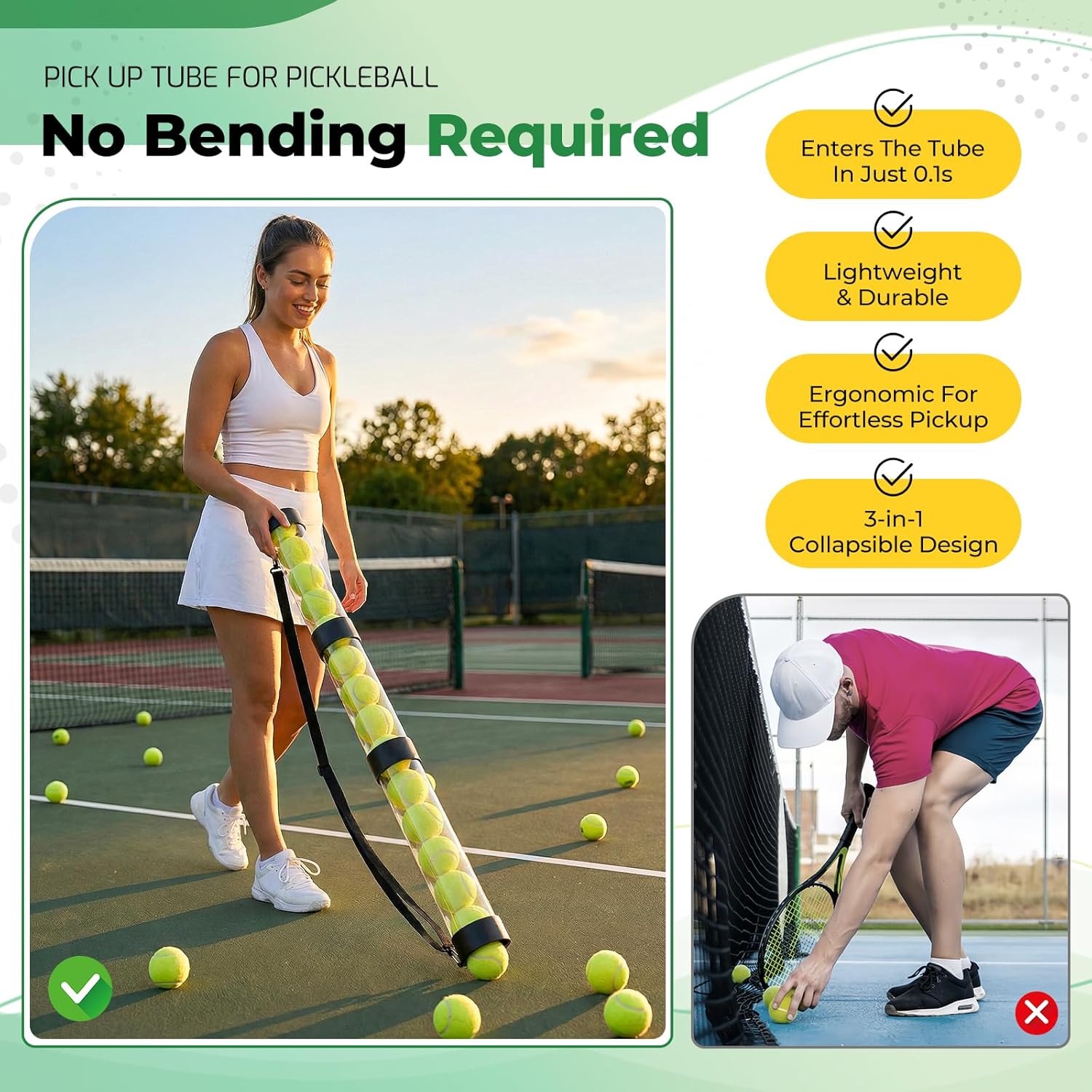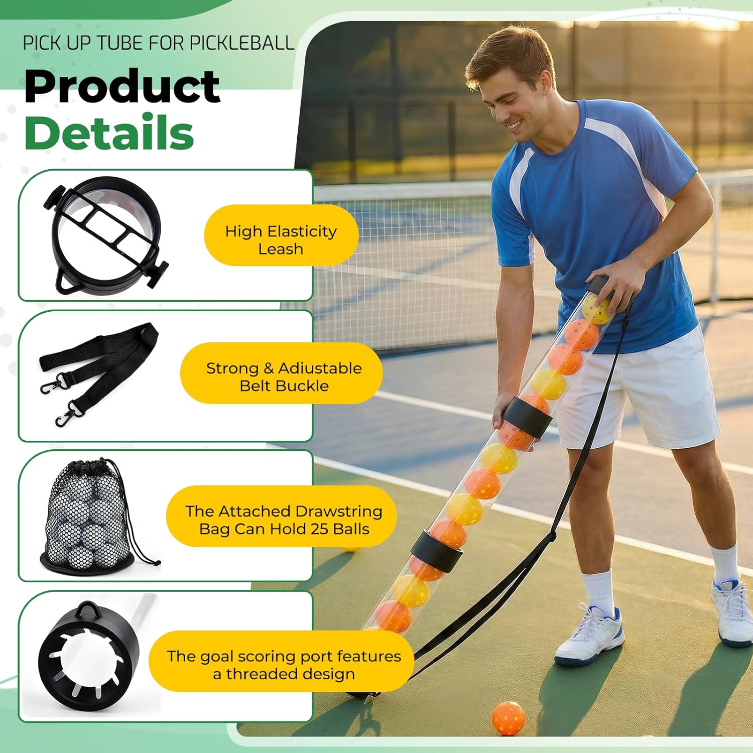 | Included Components | 1*Collapsible Pickleball Ball Retriever+1*Mesh Bag |